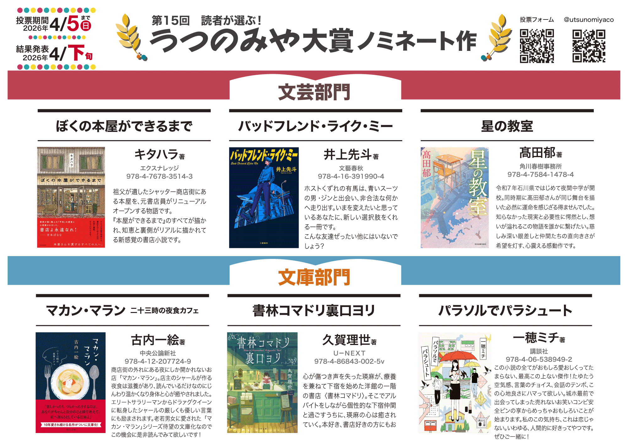 【第15回 うつのみや大賞ノミネート作品発表!】