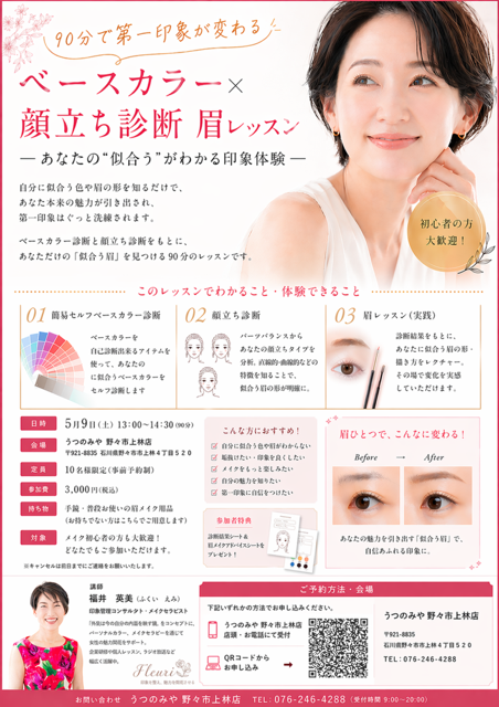 【うつのみや上林店】90分で第一印象が変わる ベースカラー×顔立ち診断 眉レッスン